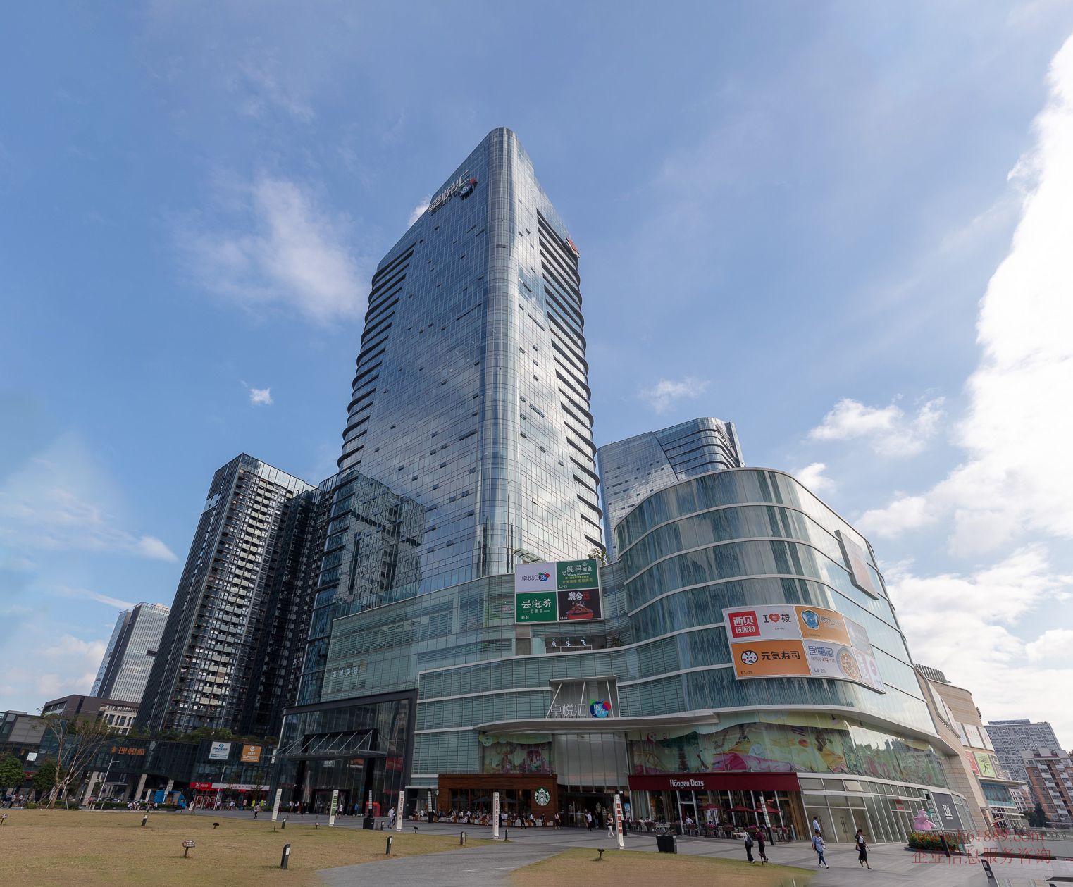二期:南区:2栋:150m的超高层双子塔甲级写字楼:福田综合体地标建筑、拥有2栋双子塔楼和约20万平的福田最大购物中心、2期整体高158米、地上28层、地下4层、从7层到28层是塔楼办公部分、从-2层到6层是联体商业部分、同时商业的-1/-2层直接连通地铁4号线和9号线、卓越汇、已入驻的商家福田最大IMAX嘉禾影院、华润V+精品超市、HM、反斗乐园等等