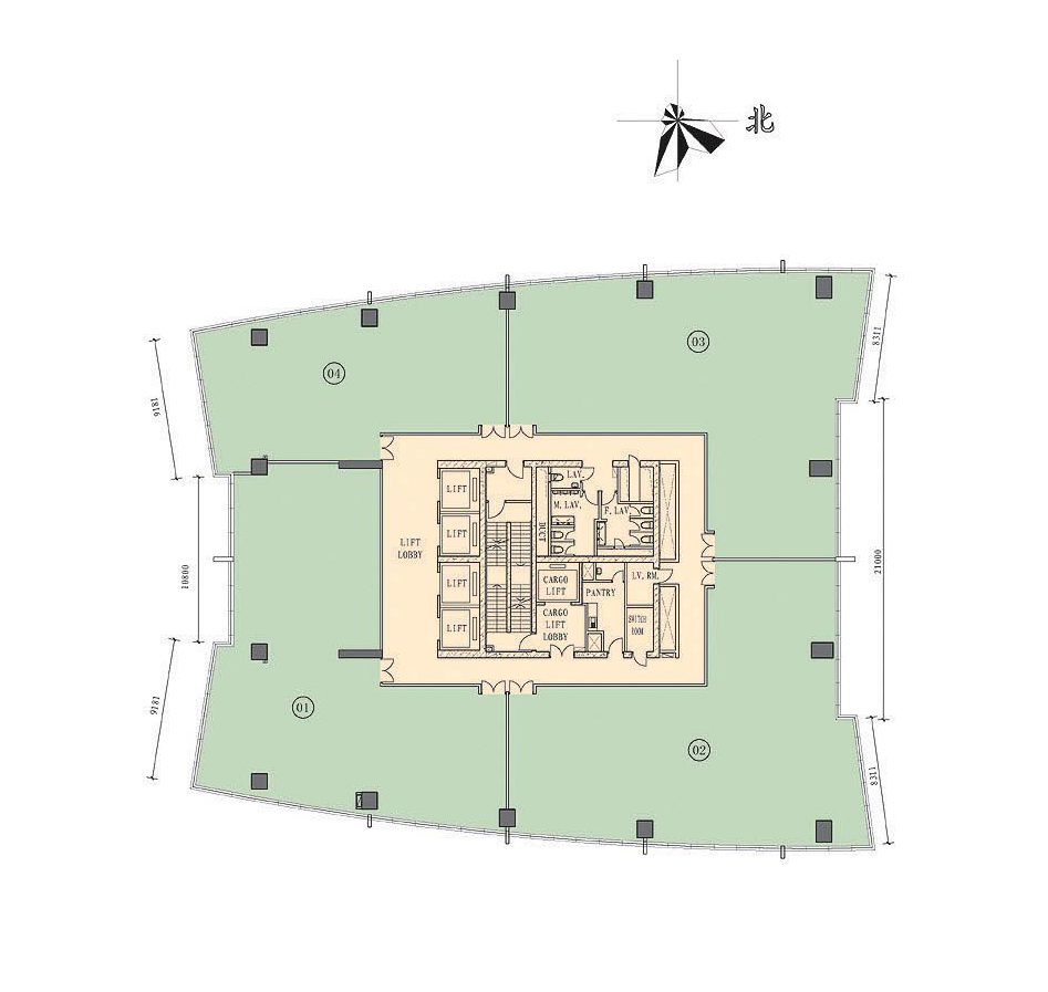 货运/消防电梯:设4部货运/消防电梯 (每栋塔楼各2部)