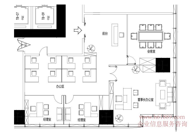 出租户型:4个办公司、1个大厅