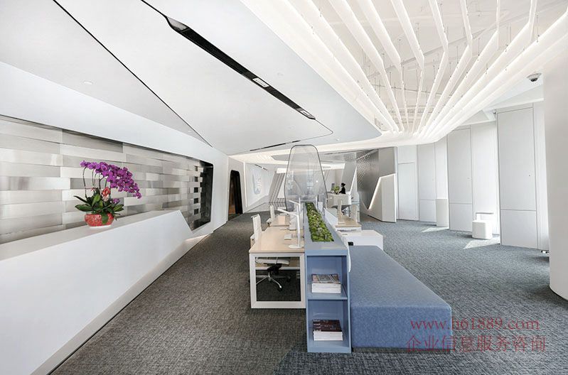 宽阔柱距、 超高空间使用率:空间内的外框柱之间距离达到了近10米、极高得办公空间的完整性与实用性