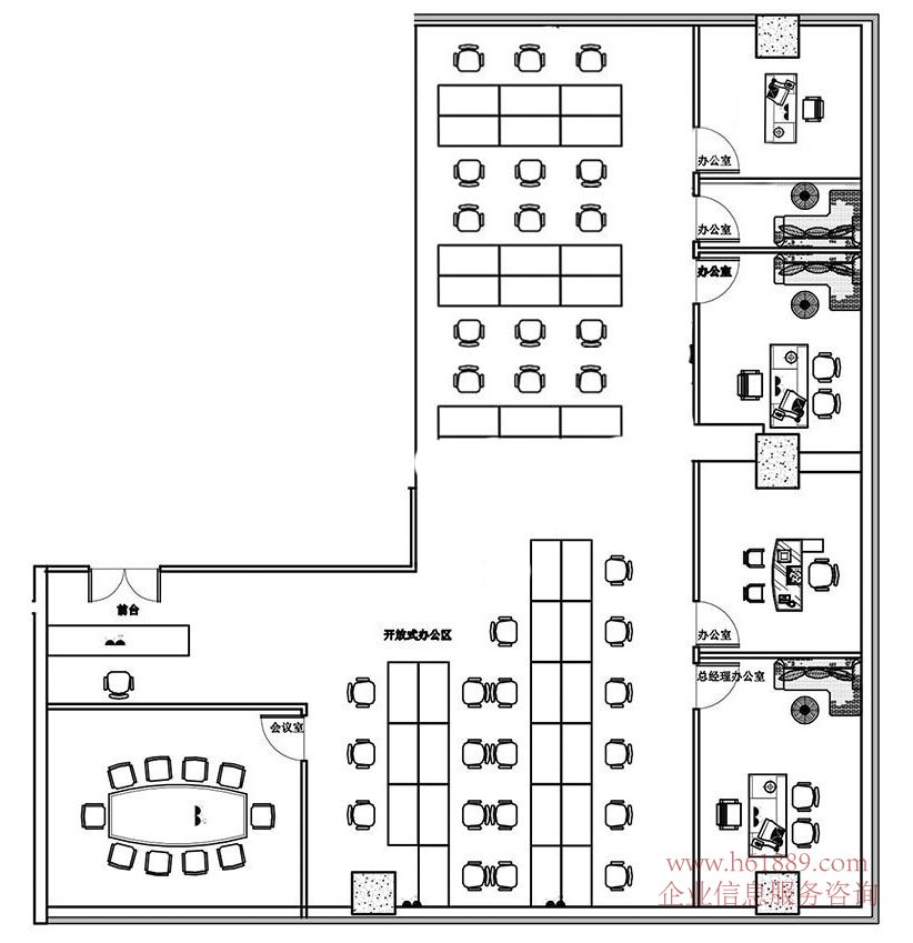 出租户型:6个办公室、一个厅