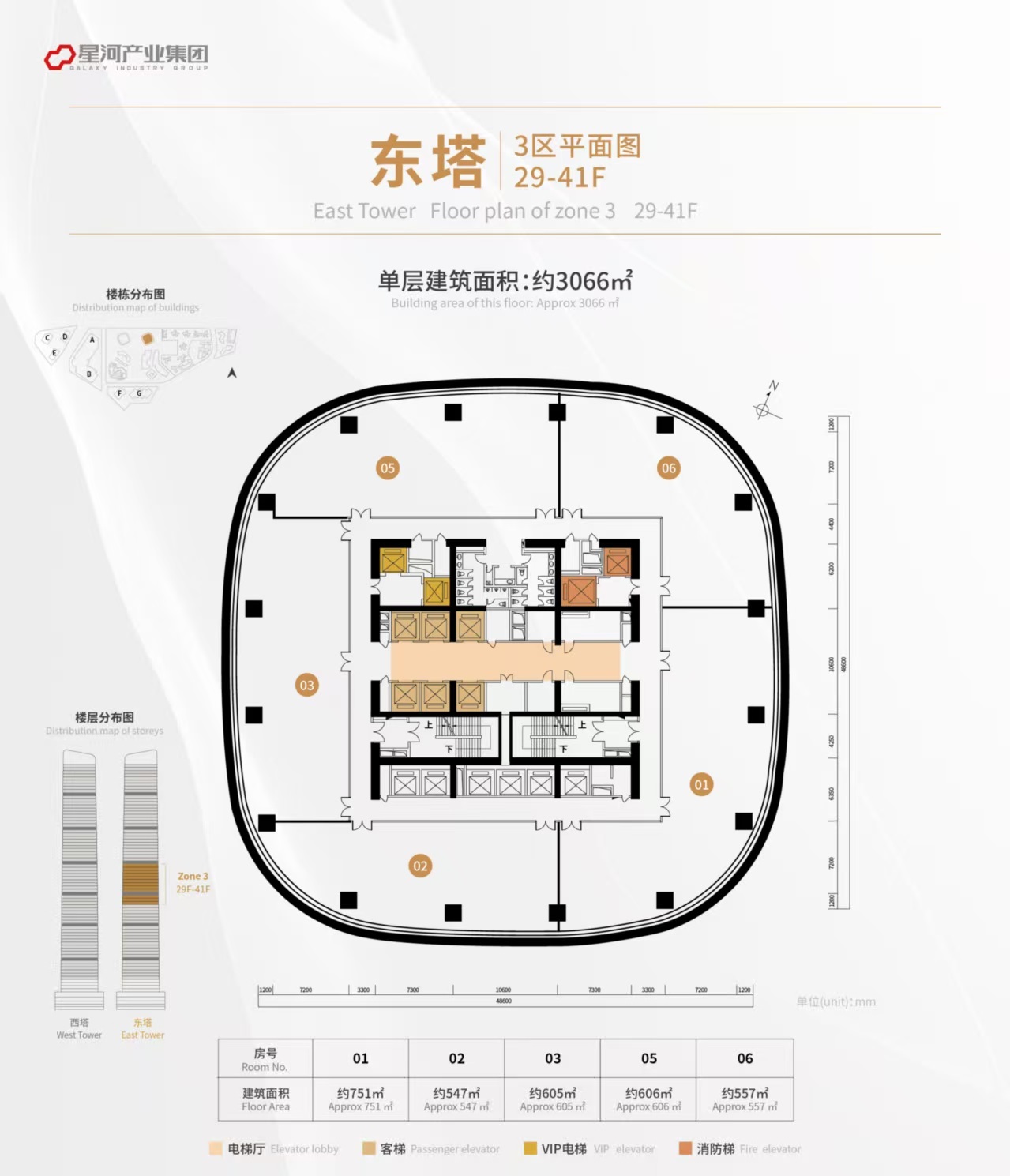 电梯:双塔共计88部品牌电梯,4000:1服务比,其中单塔32部客梯,2部消防梯,4部地下室转换梯、6部穿梭梯
