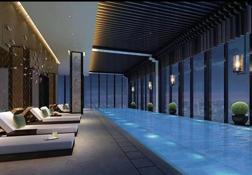 休闲娱乐:SPA休闲会所、咖啡吧、空中泳池