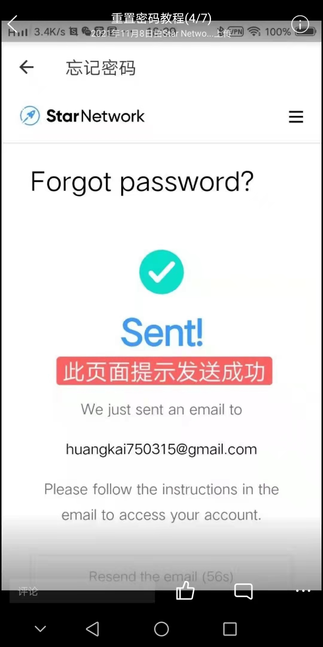 Star Network 星网 重置密码 找回密码 流程