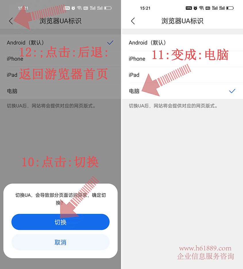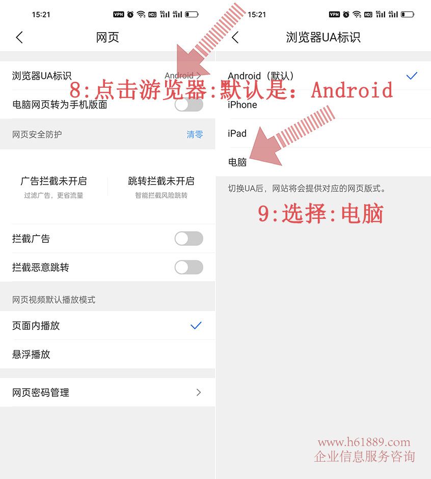8:点击游览器:默认是:Android